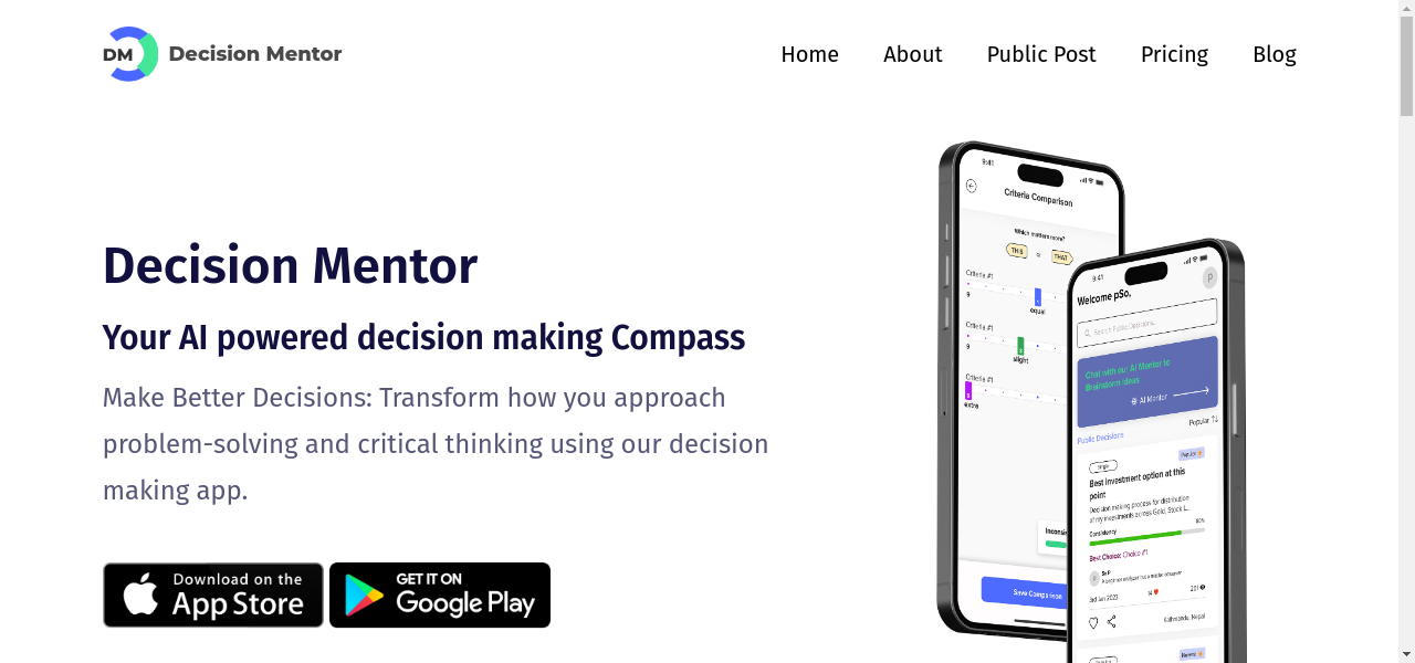 AI-powered decision suggestions, visualization and analysis, social sharing, user-friendly interface. Versatile tool for public and private decision-making.