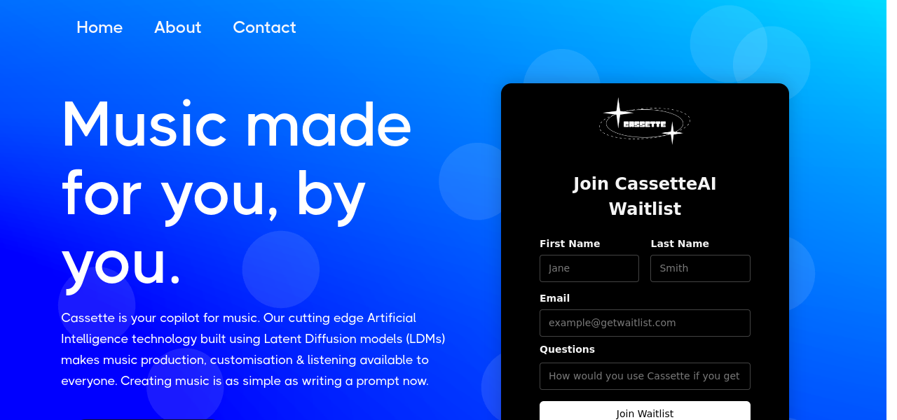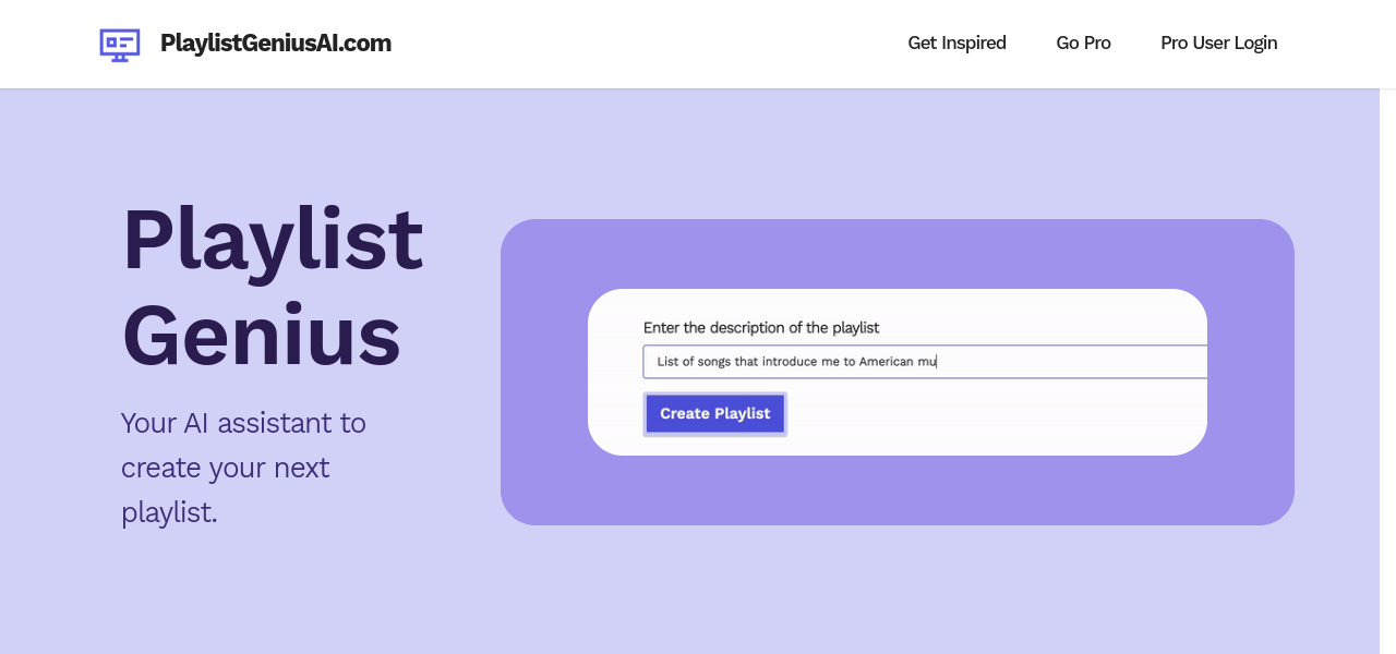 AI-generated playlists based on user queries, discover new music, support for independent artists, user-friendly website.