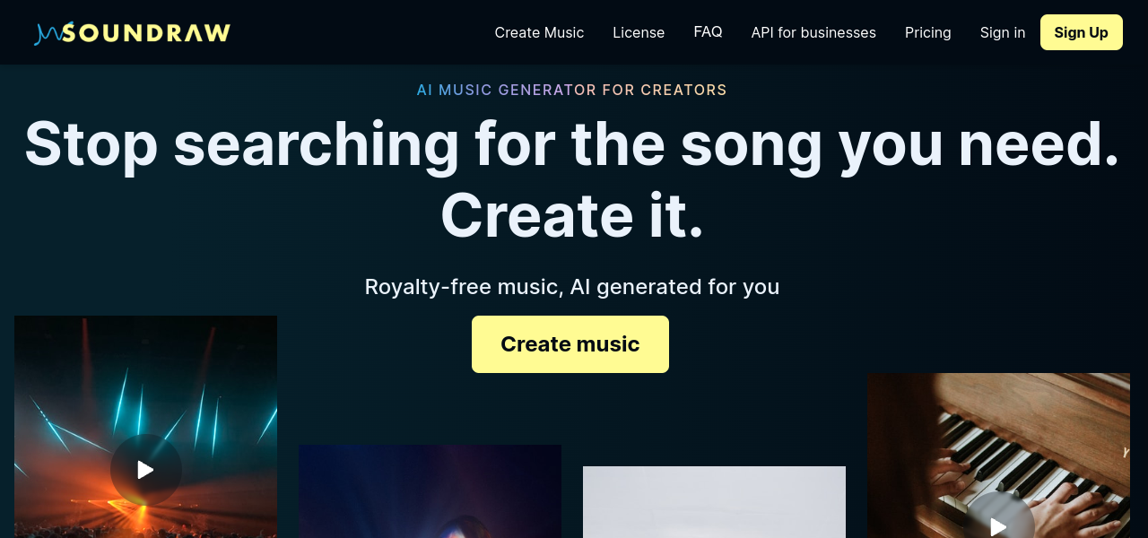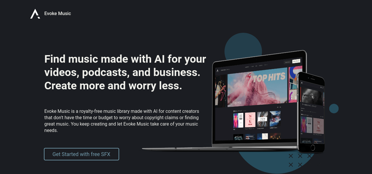 AI music library with original tracks, royalty-free and searchable by genre, mood, and keyword.