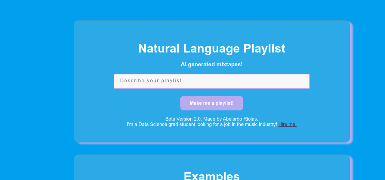 AI assistant creates playlists based on user descriptions using song recommendations from ChatGPT and Spotify.