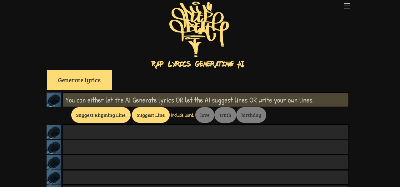 AI-generated lyrics for inspiration, entertainment, or as a foundation to create complete songs.