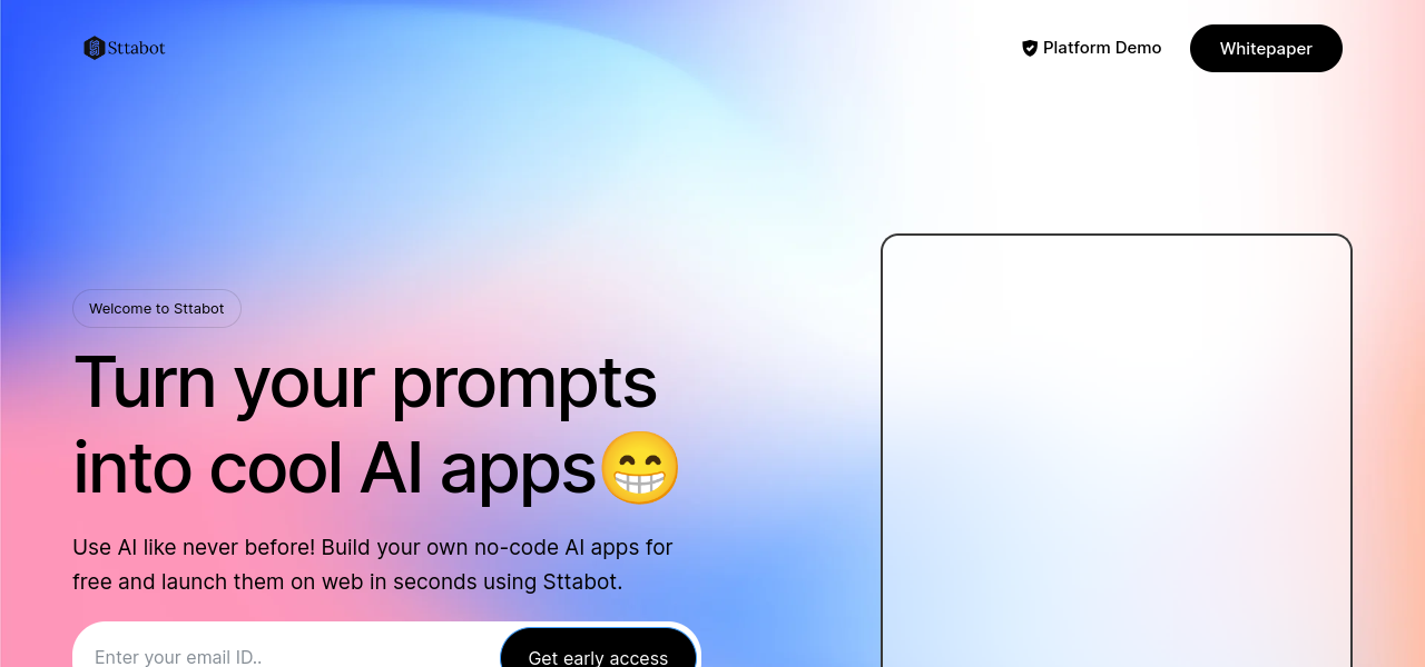 Build, customize, and launch your own AI apps in seconds with Sttabot.