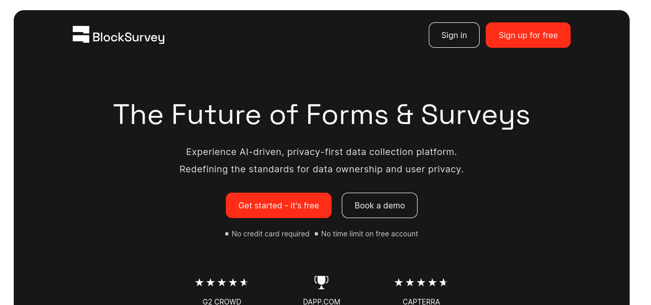 BlockSurvey: AI-powered form creator with end-to-end encryption, giving users full ownership and protection of their data.