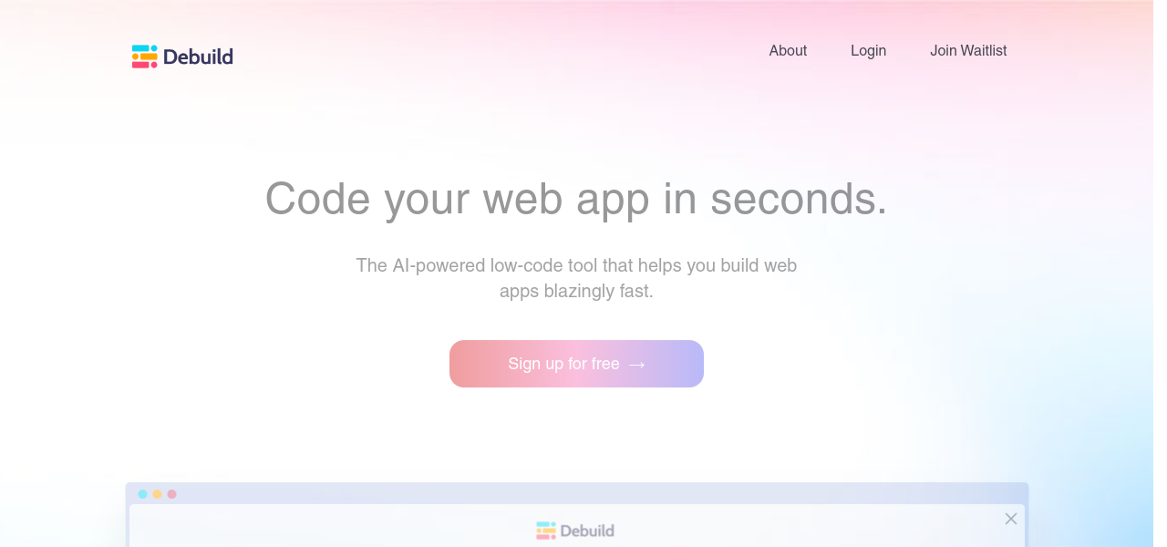 Debuild: AI-powered low-code platform for fast web app development without extensive coding.