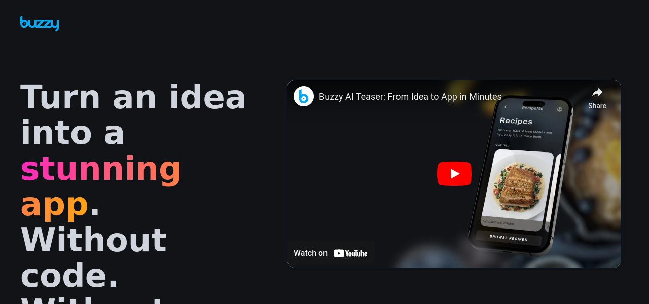 Buzzy Ai generates high-quality Figma designs and full-stack apps in minutes without coding.