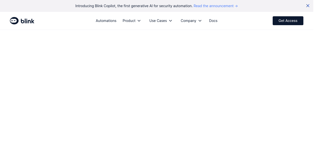 Automate security workflows effortlessly with Blink Copilot’s generative AI and library of pre-built workflows.
