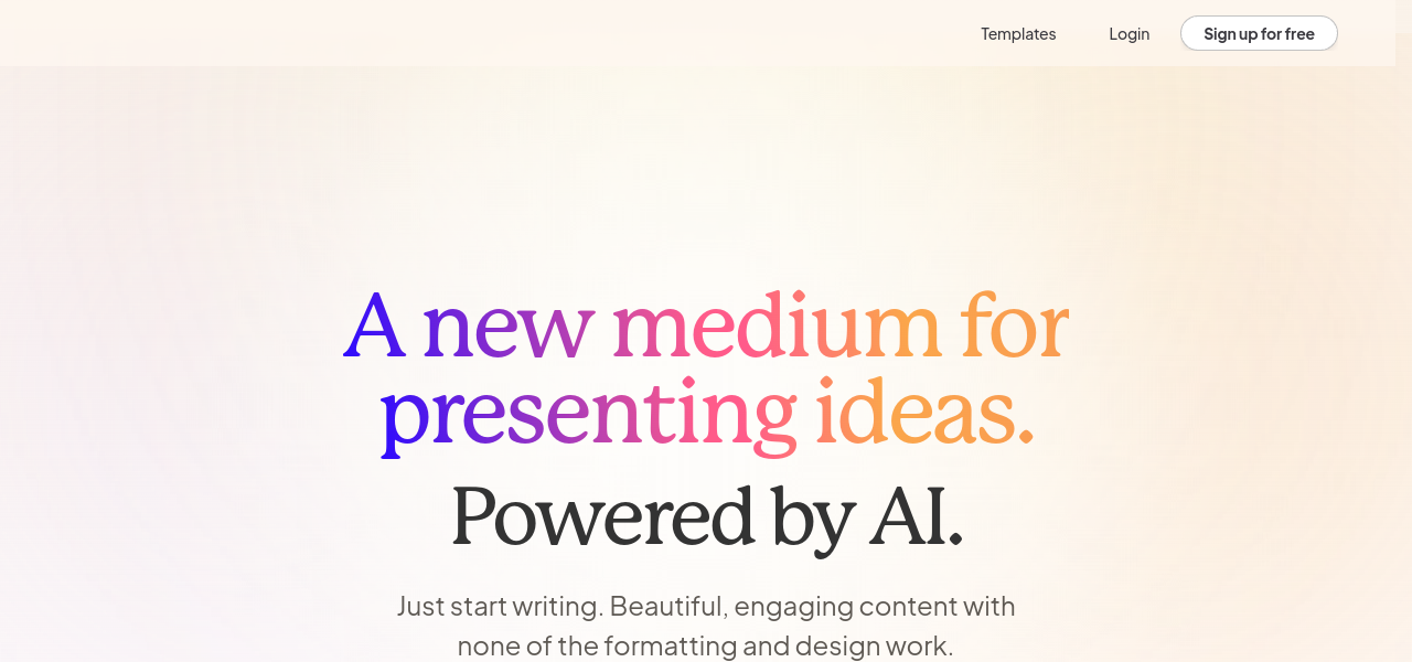 AI-powered tool for creating beautiful, interactive presentations, documents, and webpages quickly and easily.
