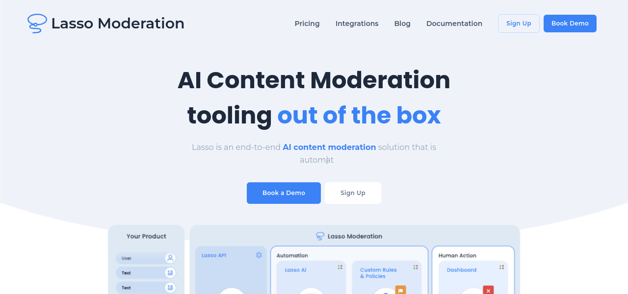 AI-powered content moderation with customizable rulesets, intuitive dashboard, and advanced analytics.
