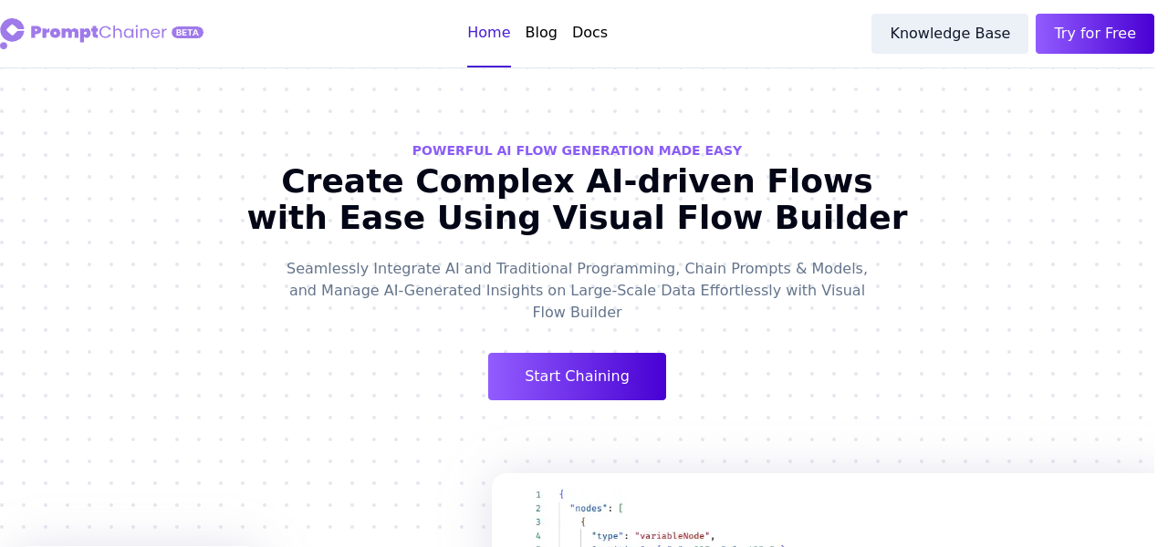 PromptChainer: AI tool for creating personalized workflows using pre-built templates, code libraries, and visual flow design.