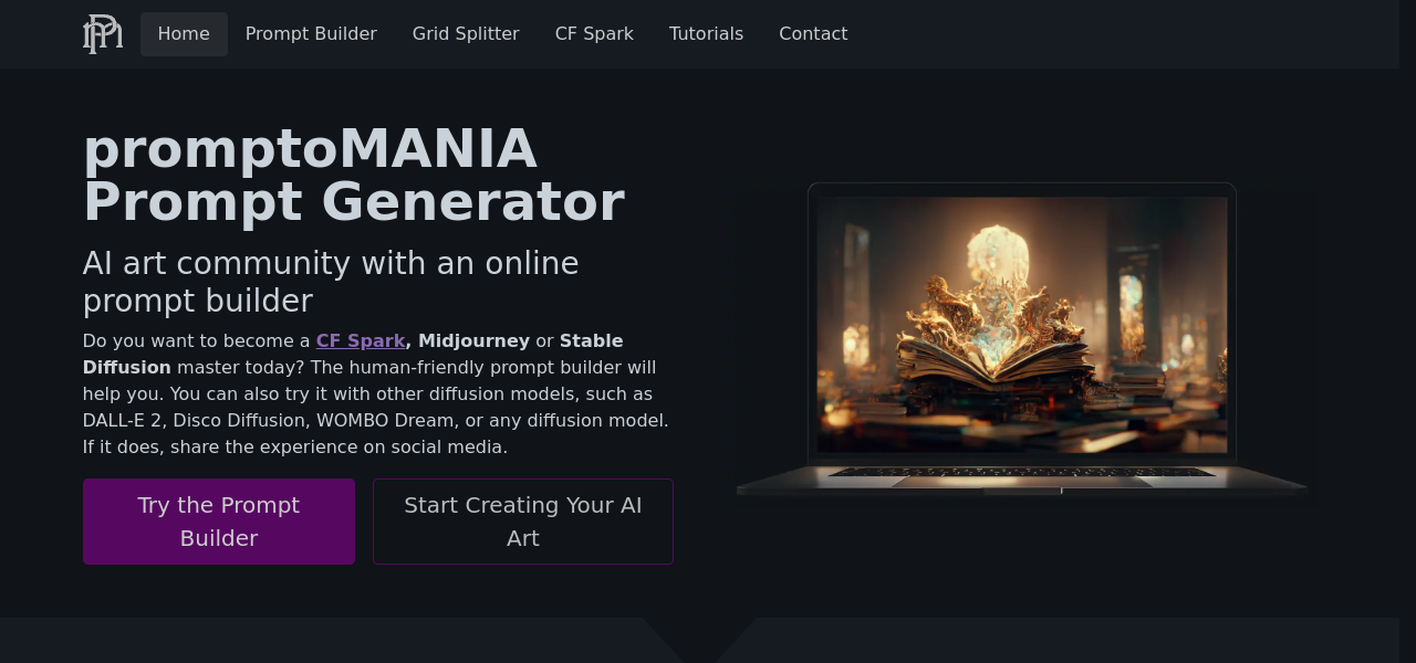 AI art prompt generator for stunning, reproducible images. Features prompt builder and image separation tool.