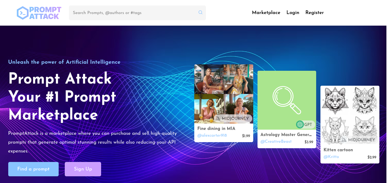 PromptAttack: Buy/sell customizable AI prompts for optimal results. Reduce API expenses, earn passive income.