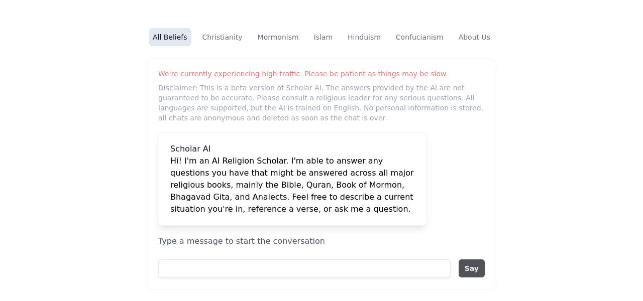 Real-time, multilingual AI chatbot providing information on religion, belief systems, and philosophy.