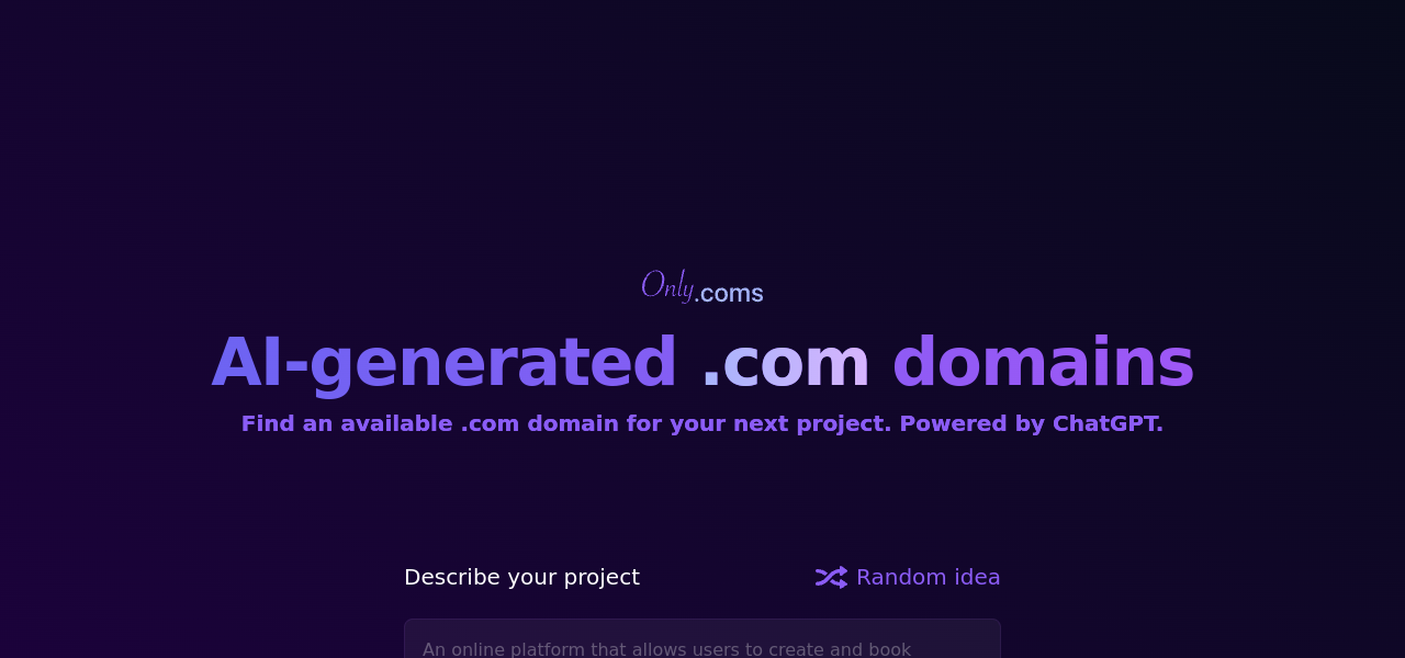 AI tool generates relevant .com domains based on natural language input for entrepreneurs, web developers, and marketers.