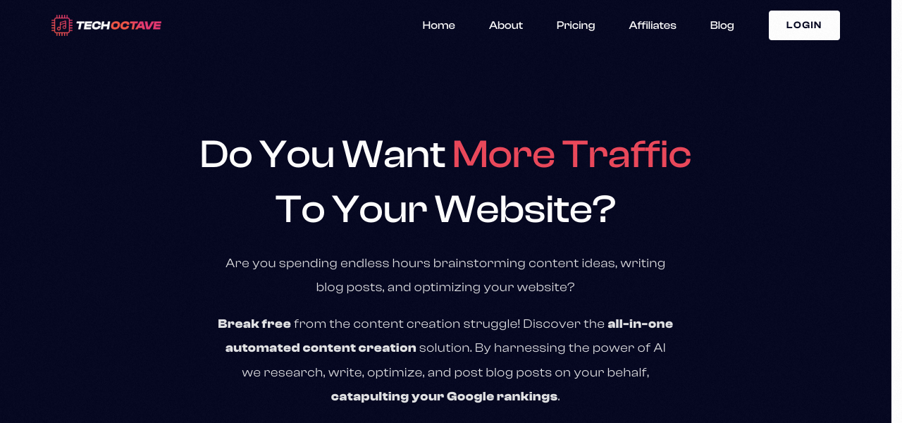 AI-powered tool generates SEO-optimized blog posts, improves search rankings, and increases organic traffic.