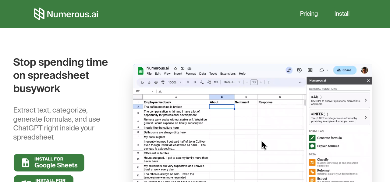 Powerful AI tool automates tasks, generates formulas, categorizes items, and formats cells for improved productivity.