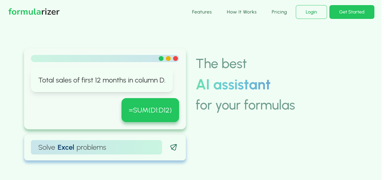 AI-powered toolkit simplifies complex Excel formulas and automations, with formula generation, explanation, Google Sheets integration, and step-by-step answers.