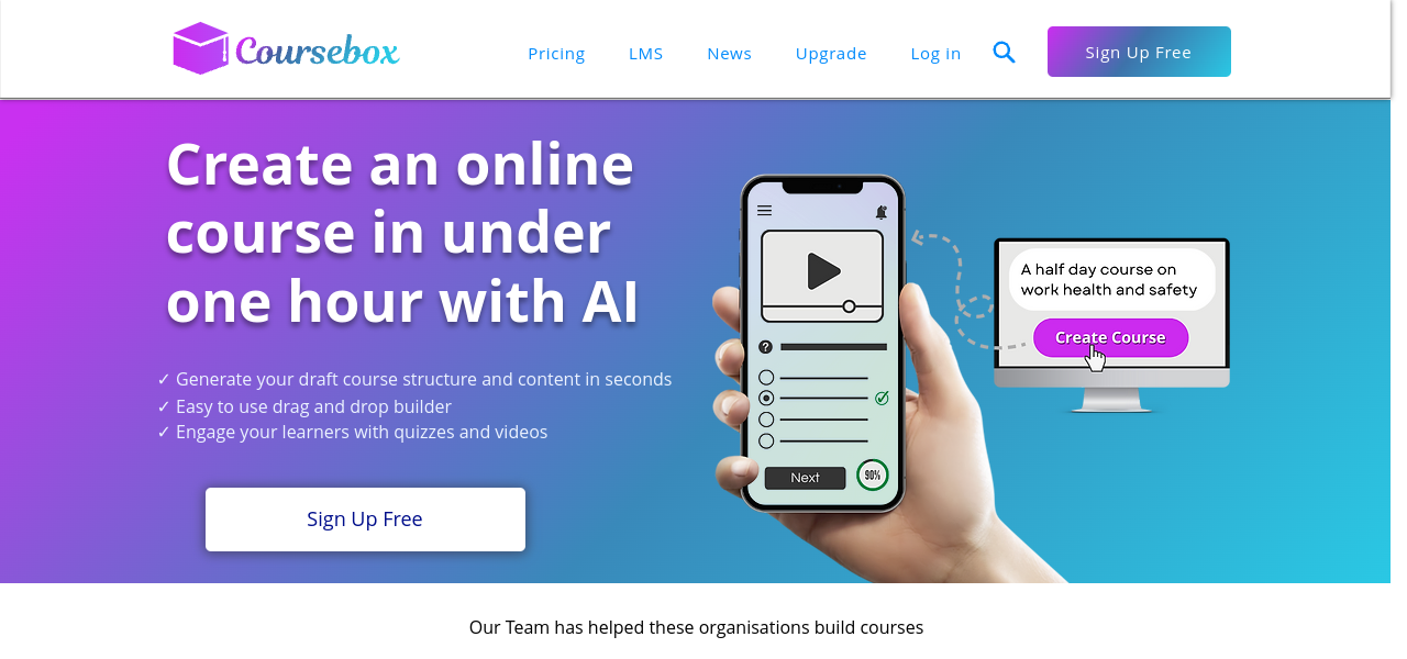 Accelerate course creation with Coursebox’s AI-generated structure and rapid content creation features.