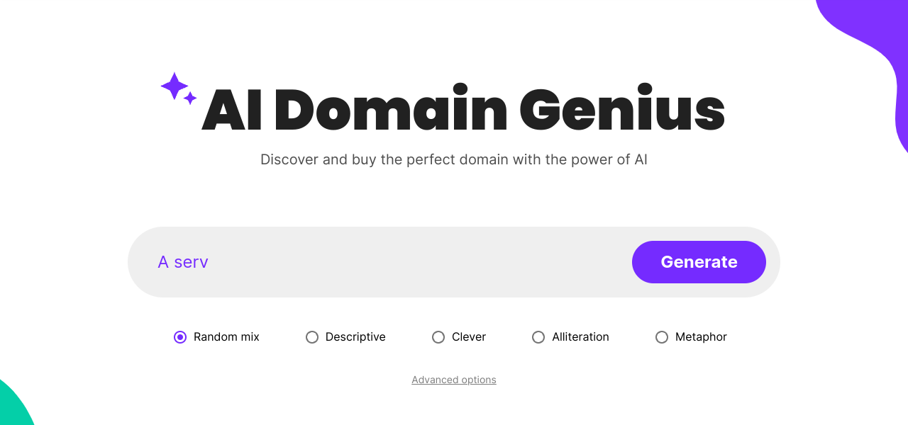 AI Domain Genius – AI-powered tool that generates domain name suggestions to help users purchase their perfect domain.