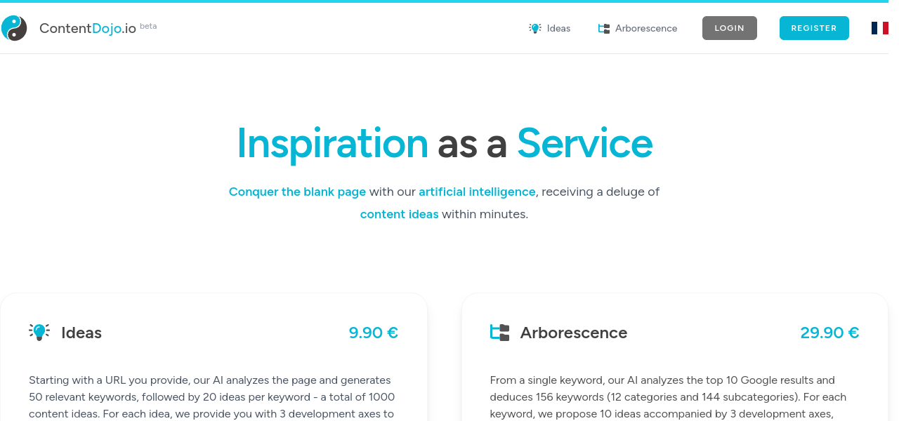 AI tool generates personalized content ideas for various formats, providing relevant suggestions organized by keyword.