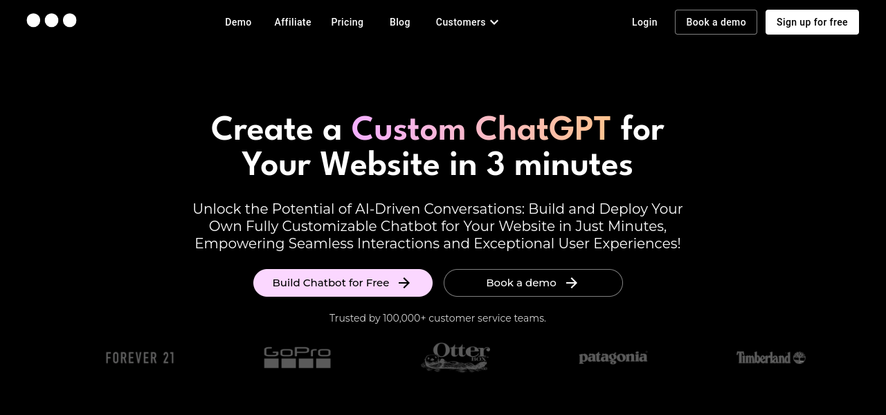24/7 customer support platform powered by ChatGPT. Train chatbot, customize themes, multi-language support, powerful analytics, hybrid support.