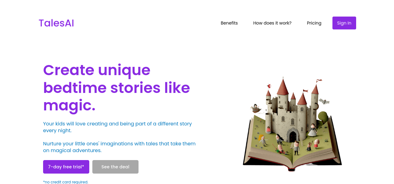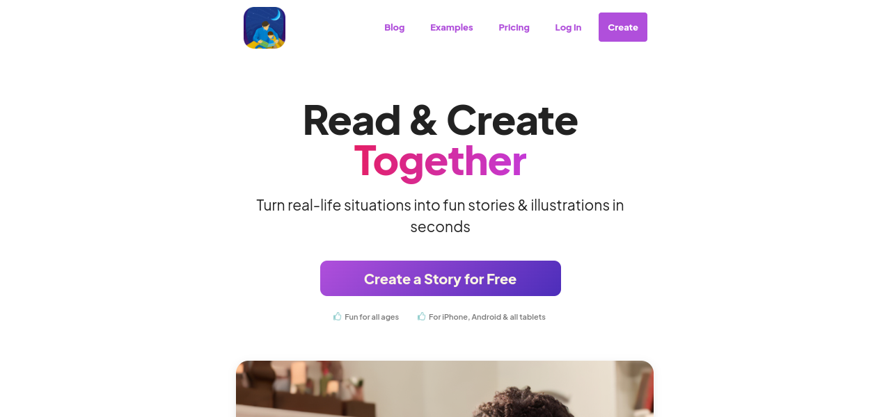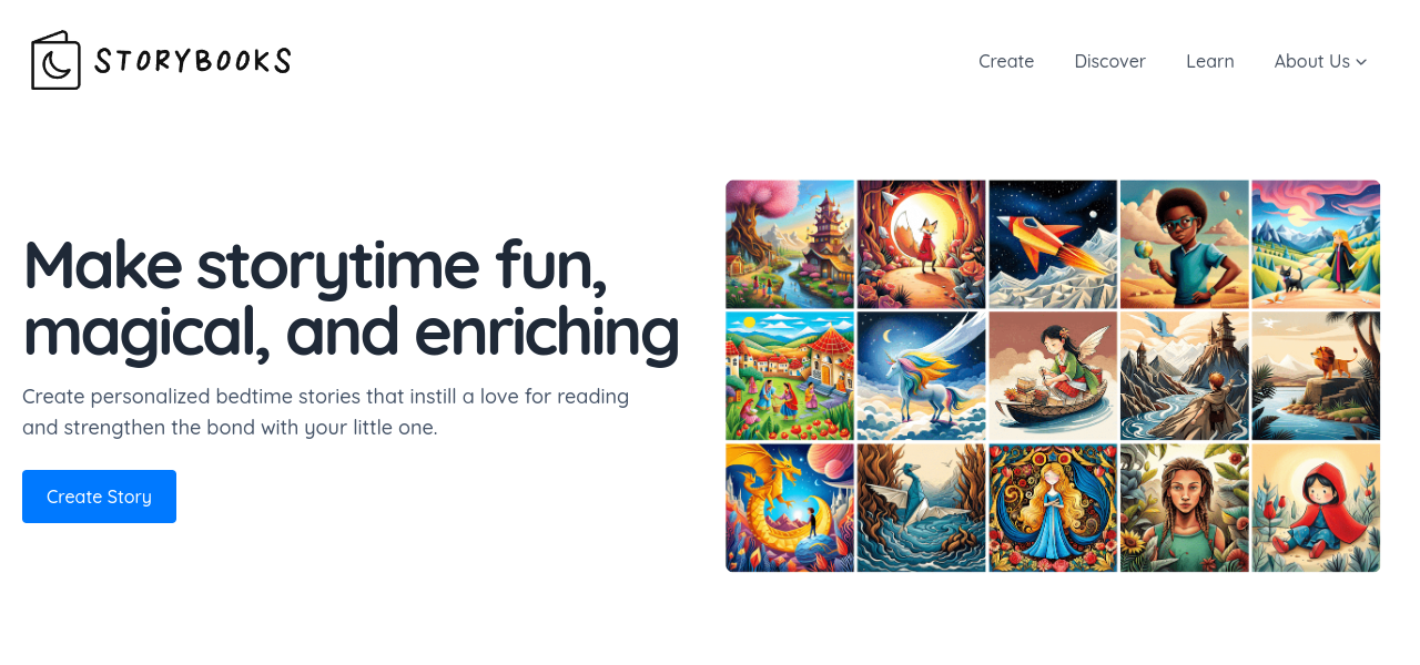AI-powered storytelling tool for children, featuring AI-generated stories, stunning illustrations, and age-specific content.