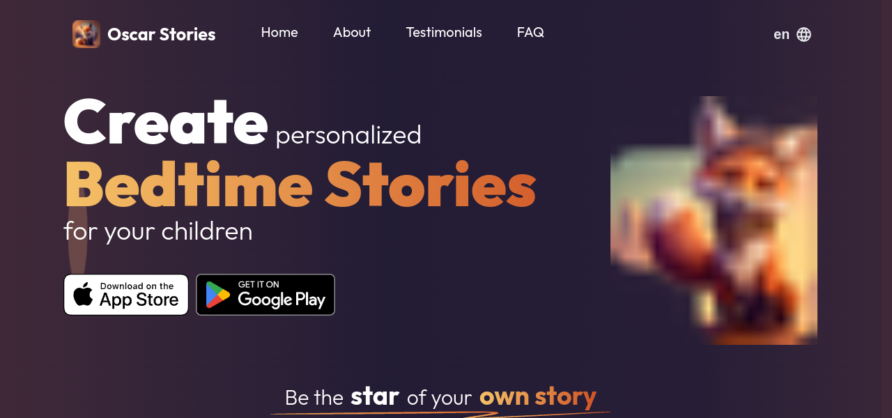 Oscar – AI bedtime story generator. Personalized stories with beautiful illustrations. Ideal for busy parents.