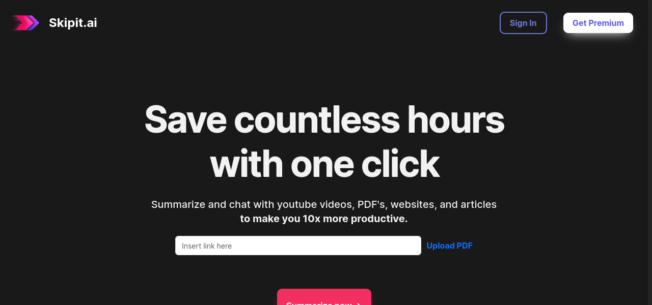 Save time, boost productivity, and enhance content consumption with Skipit’s interactive ChatGPT and streamlined process.
