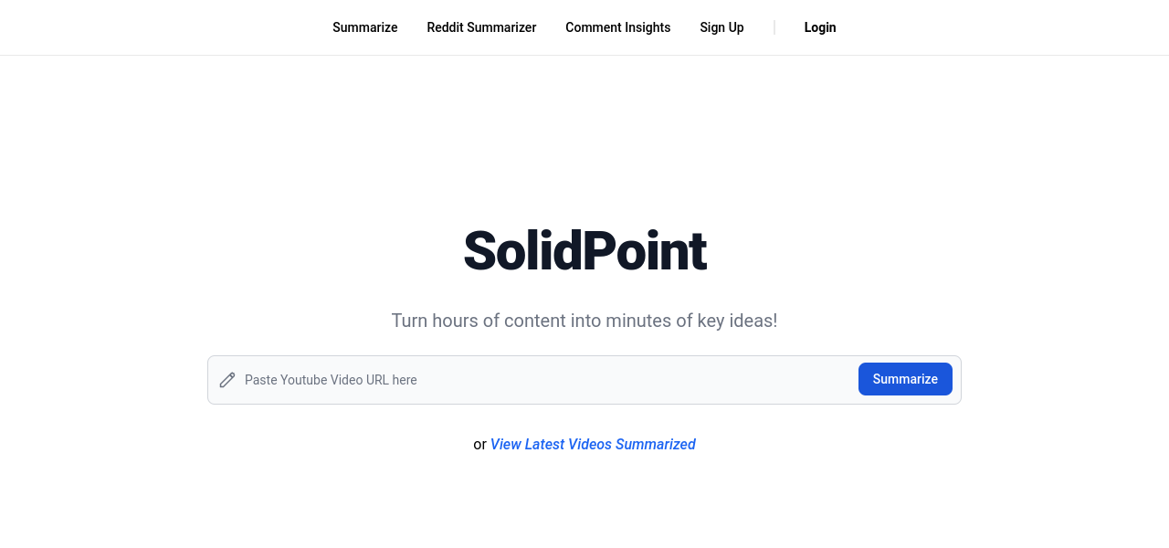 AI tool that generates video summaries by pasting YouTube URLs and offers trending summaries on its website.