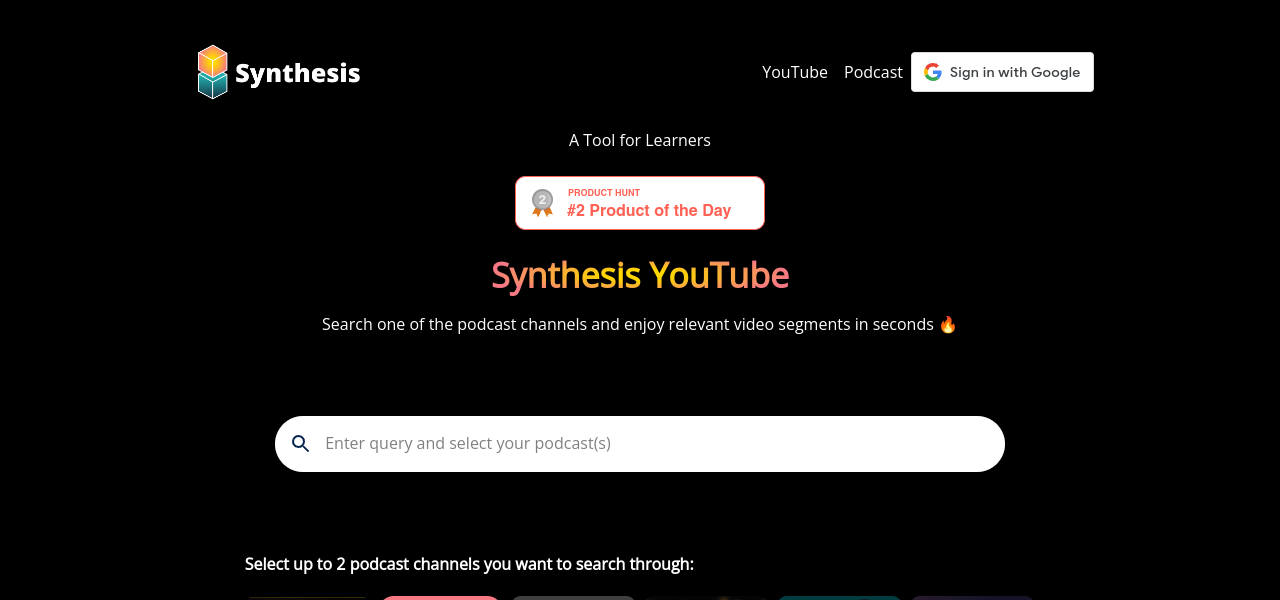 AI-powered tool for quickly finding video segments from favorite podcasts; search, recommendations, time-saving, exploration.