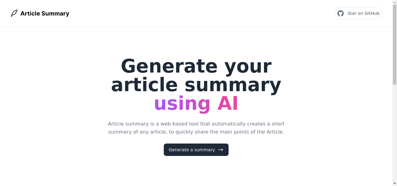 Web-based tool that creates short summaries of articles in multiple languages for easy sharing and comprehension.