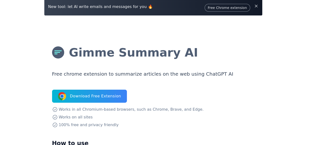 Chrome extension using ChatGPT AI to summarize articles, easy installation, privacy-friendly, compatible with Brave, open-source.