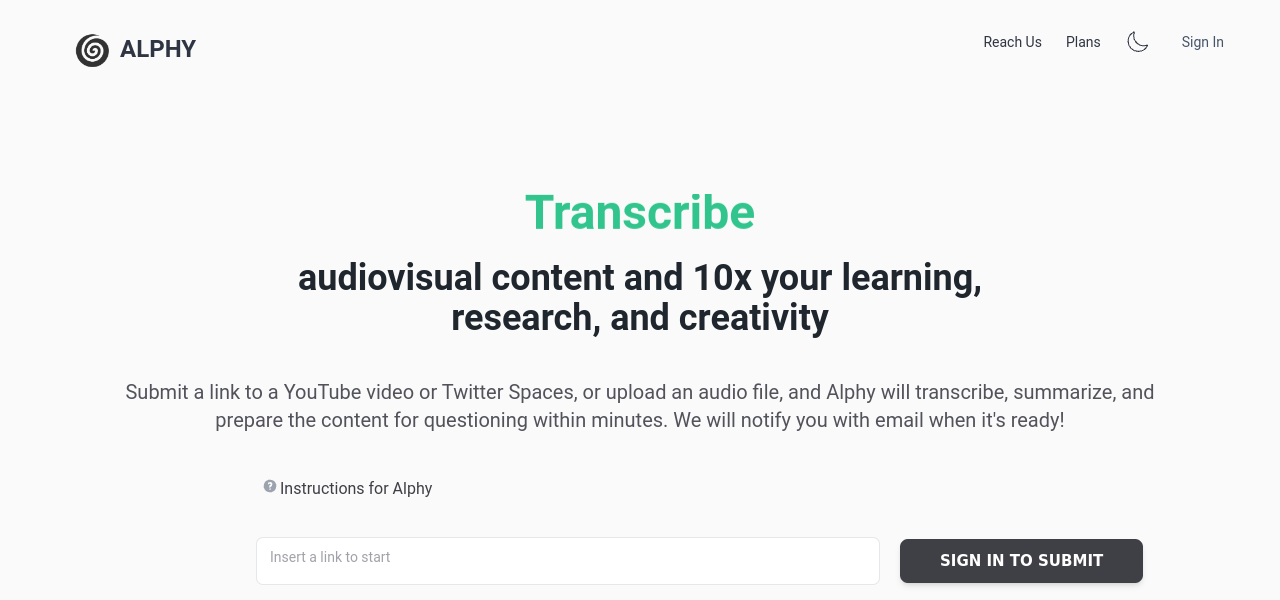 Alphy: AI tool for question-answering, detailed summaries, accurate transcripts from YouTube videos and Twitter Spaces.