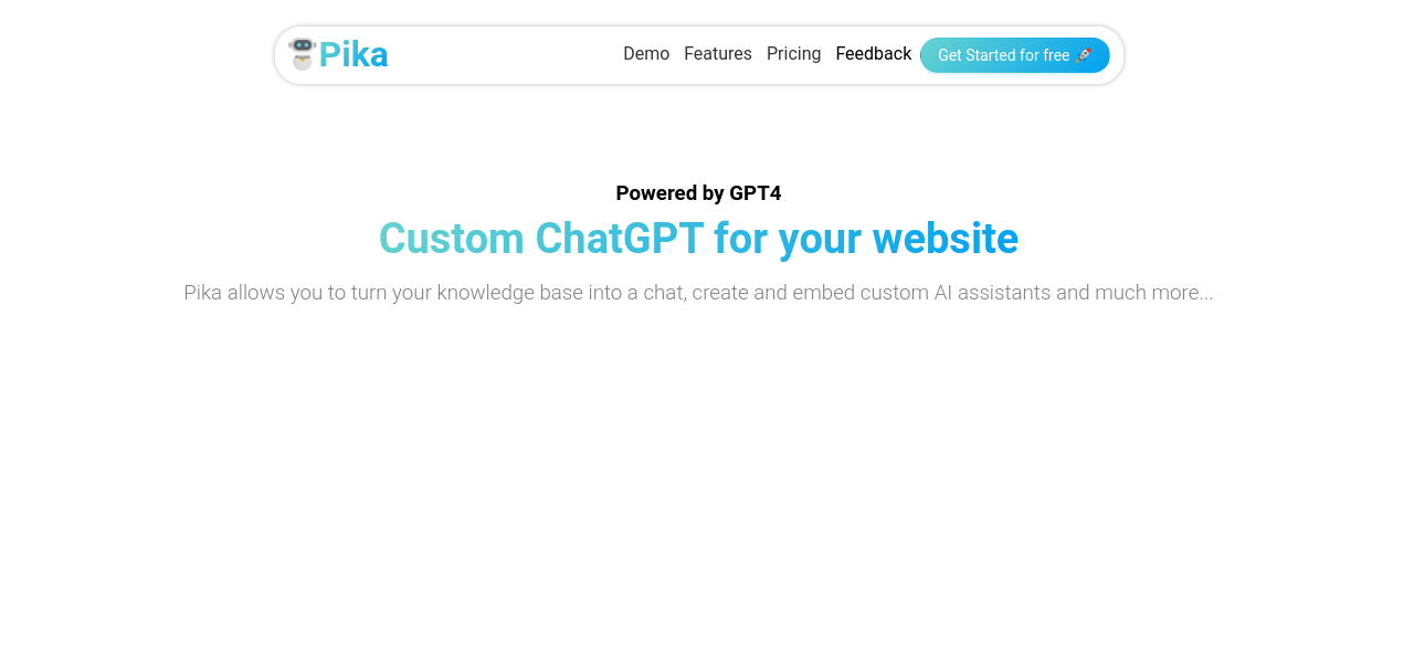 Pika: AI chatbot for instant responses, personalized appearance, and learning from PDFs/URLs to engage website visitors.