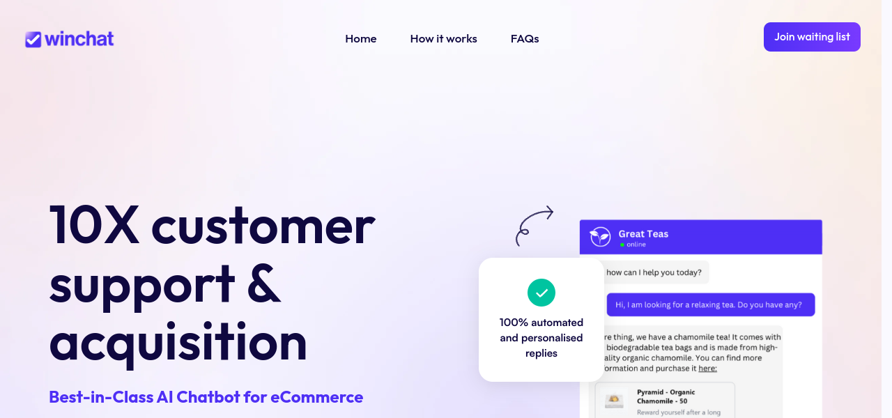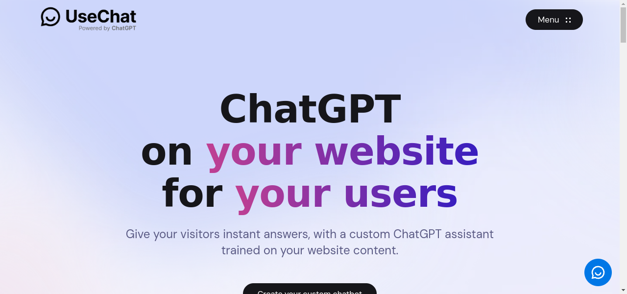 AI-powered chatbot builder for creating customized chatbots that provide real-time responses to website visitors’ inquiries.
