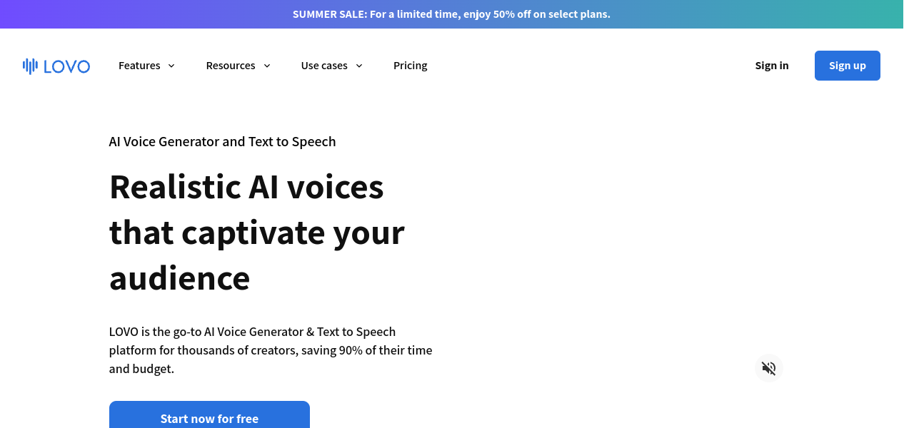 AI-powered text-to-speech tool with 400+ voices, cost-effective, intuitive UI. Ideal for e-learning, businesses, video producers, podcasters.