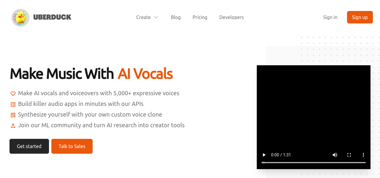 Uberduck: AI voices, custom clones, APIs for audio apps, AI raps, branding, voice automation. Personalize media and experiences.