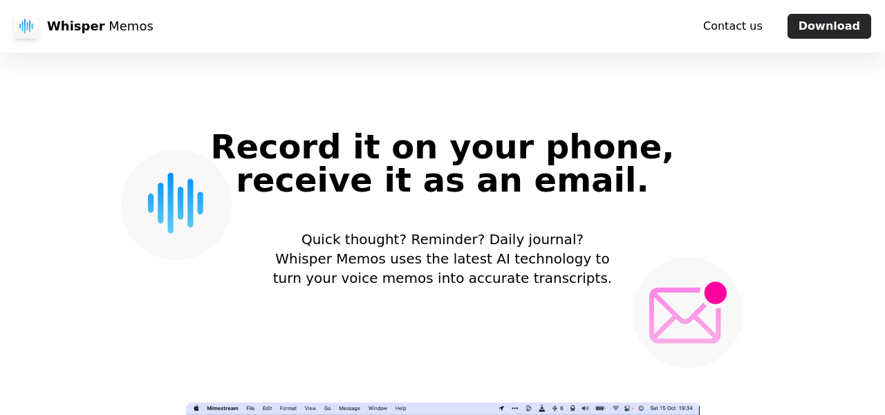 Voice recording app that sends transcriptions via email for quick thoughts, reminders, and journal entries.