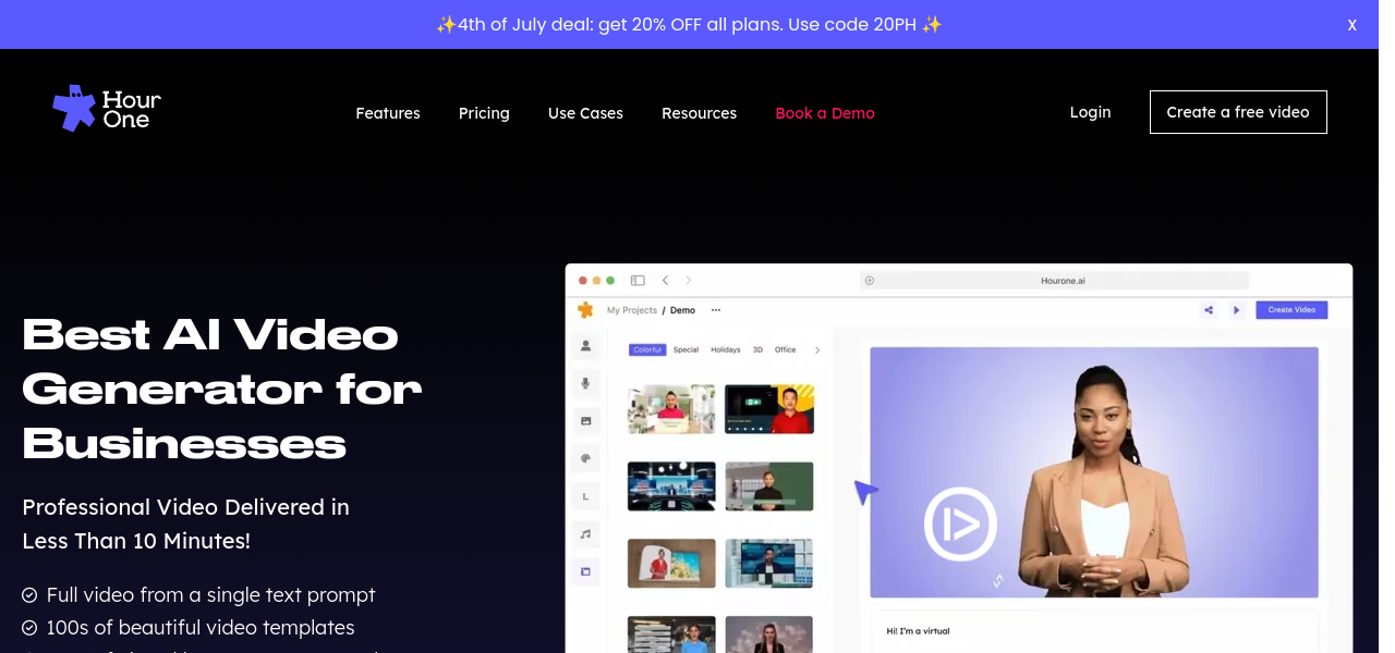 AI video generator that creates professional-quality videos quickly using AI avatars and customizable templates.