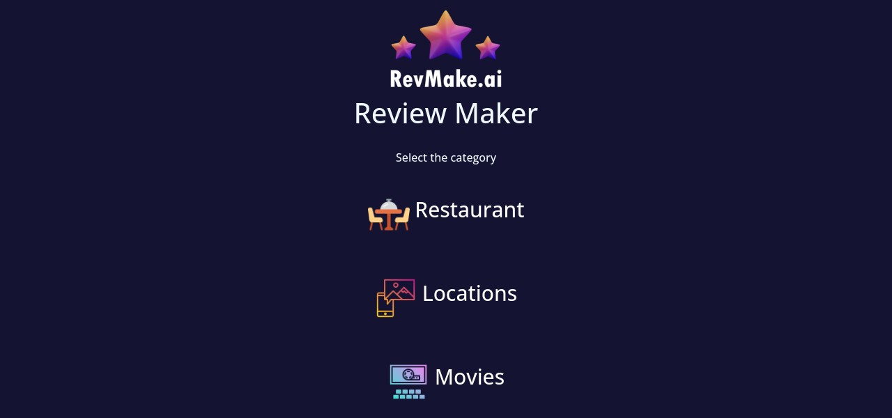 AI-powered review generator that streamlines the process of writing reviews for various categories.