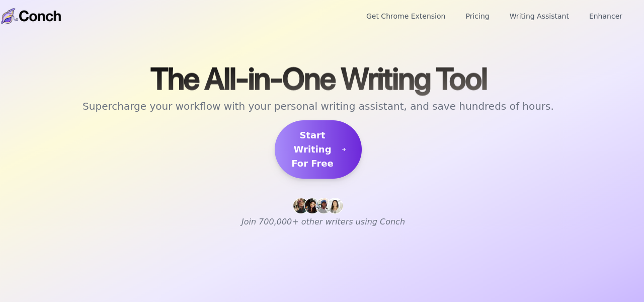 Conch: AI writing assistant boosts productivity with fast writing, bypassing detection algorithms, context-aware generation, templates, and multilingual support.