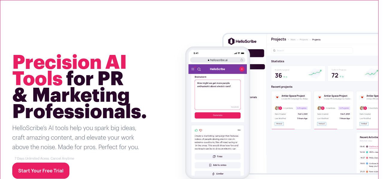 AI-powered tool for fast and creative content generation in marketing, advertising, and PR professionals.